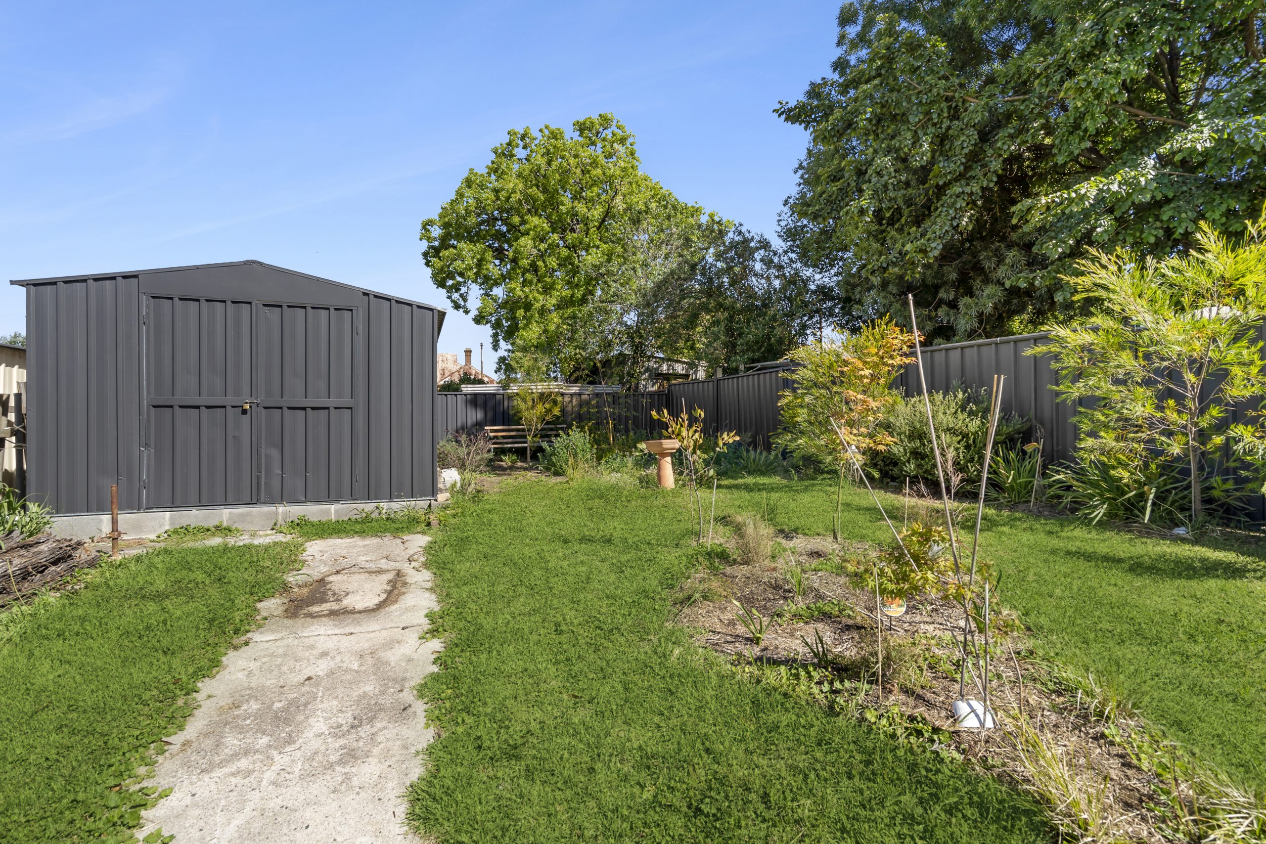 Ducted heating and cooling provide year-round comfort, while plantation shutters add a refined finishing touch. Outside, the flat 422sqm block showcases a charming cottage garden alongside large garden sheds offering excellent storage. Side right-of-way access allows for convenient off-street parking, and the B2 zoning provides added flexibility for future use.