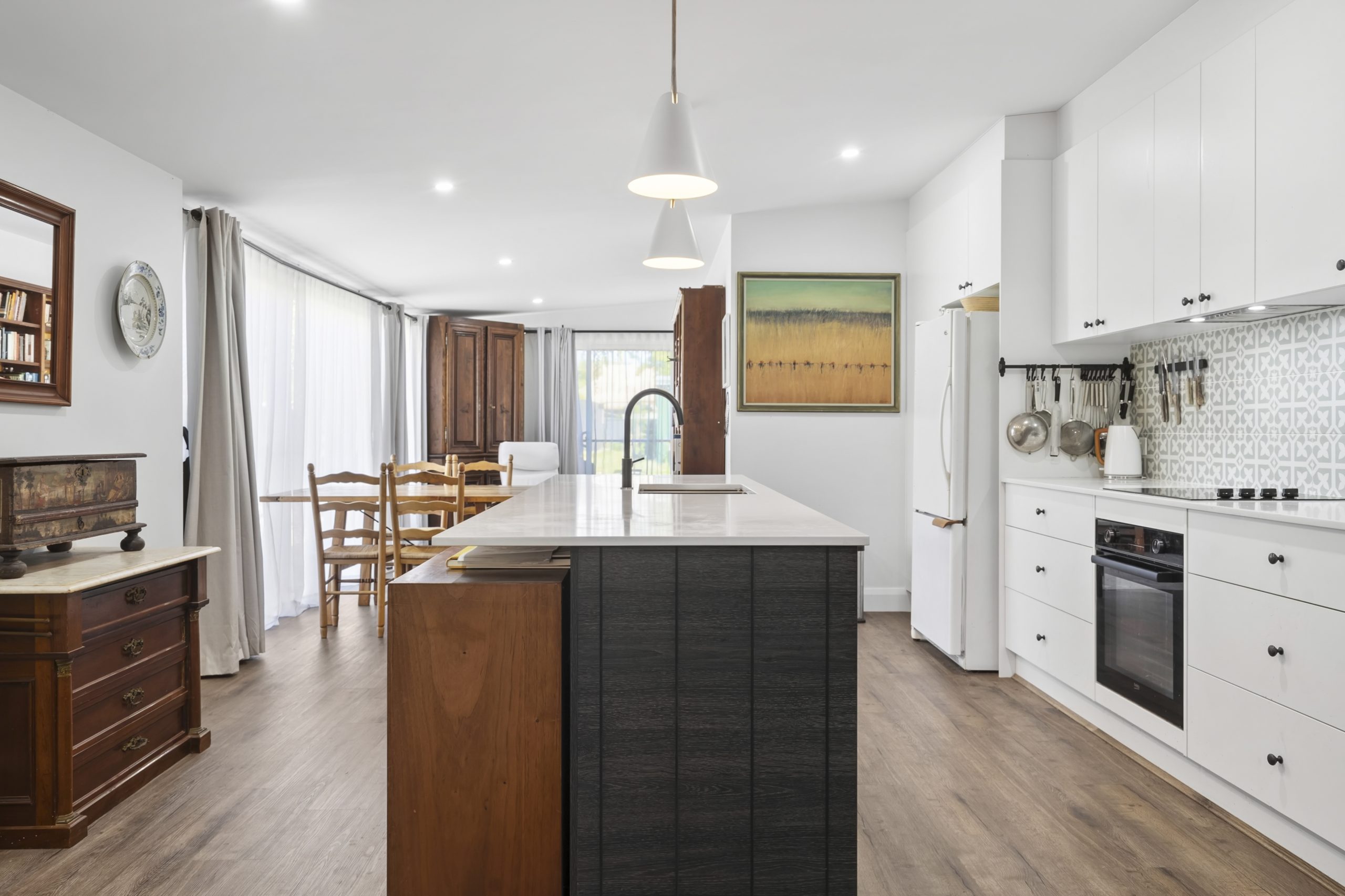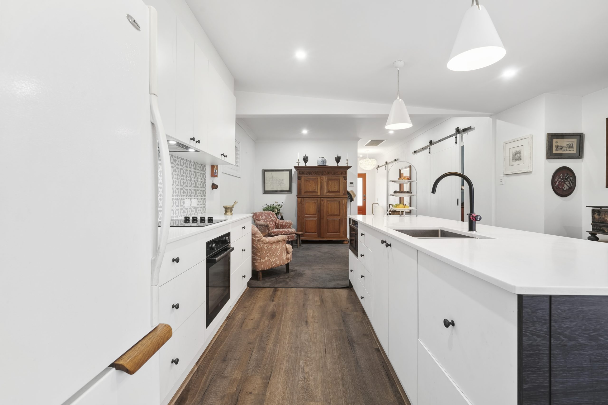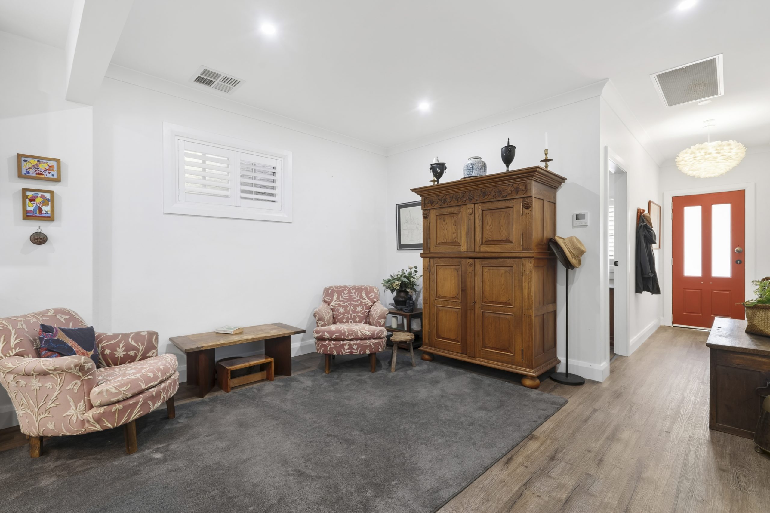 Beautifully insulated throughout, the home offers three bedrooms with built-in robes and an inviting open-plan kitchen, dining, and living area designed for relaxed everyday living. The kitchen boasts top-quality inclusions, premium tapware, stone benchtops, and a dishwasher, while both the main bathroom and ensuite feature luxurious underfloor heating and heated towel rails for added comfort. Character details, including elegant barn doors, complement the quality flooring and wide entrance hallway, creating a warm and welcoming atmosphere. All electrical and plumbing have been renewed to ensure complete peace of mind.