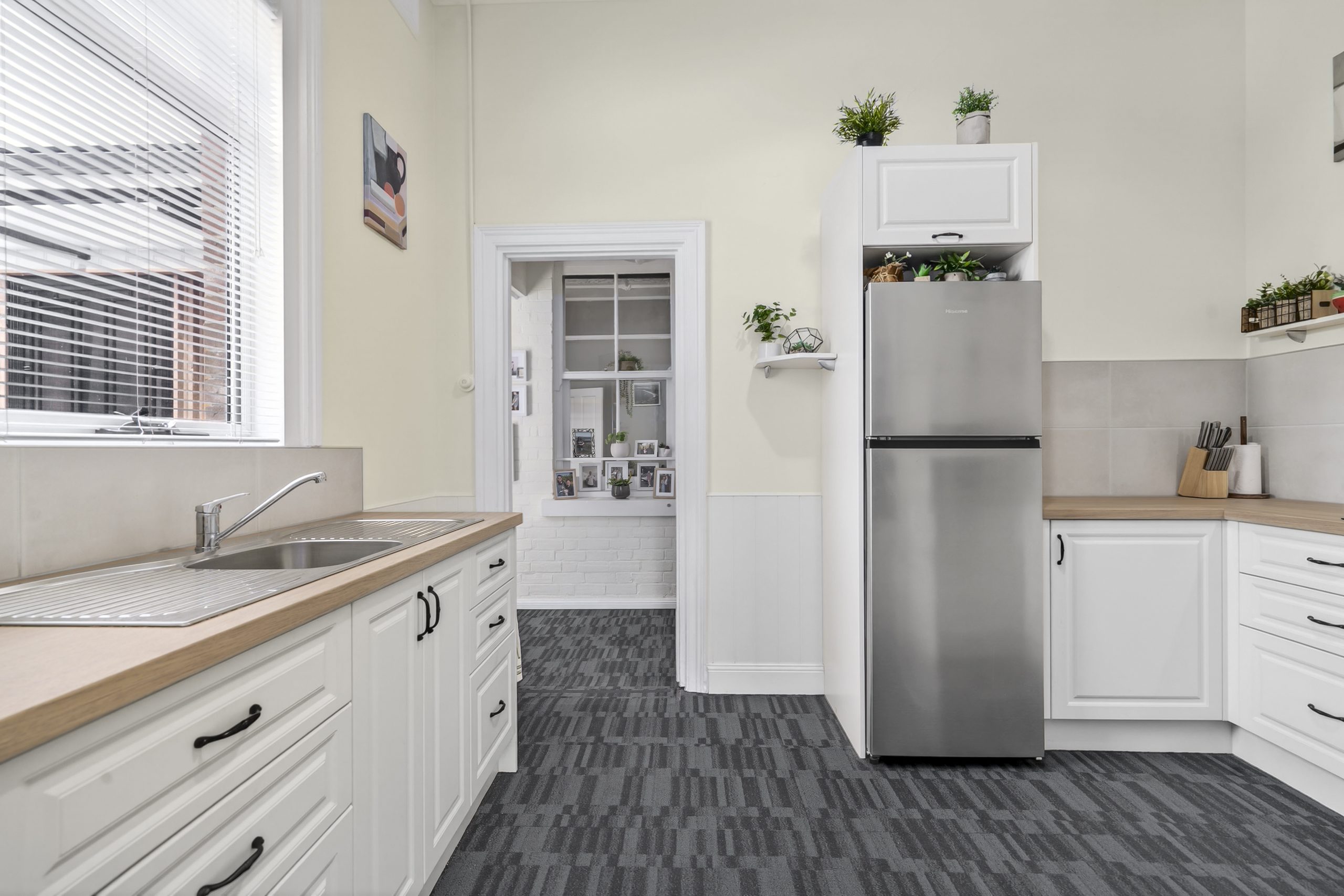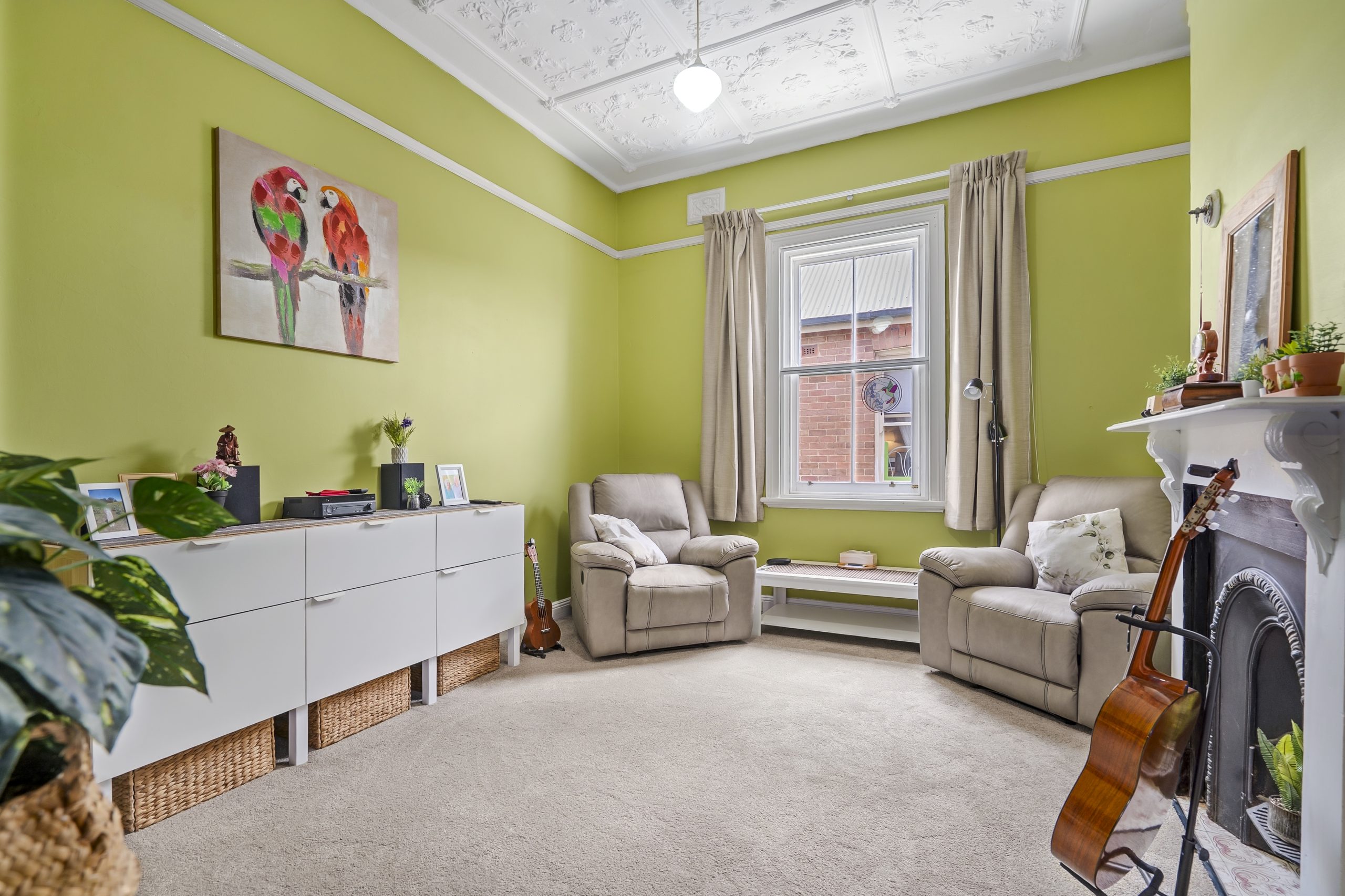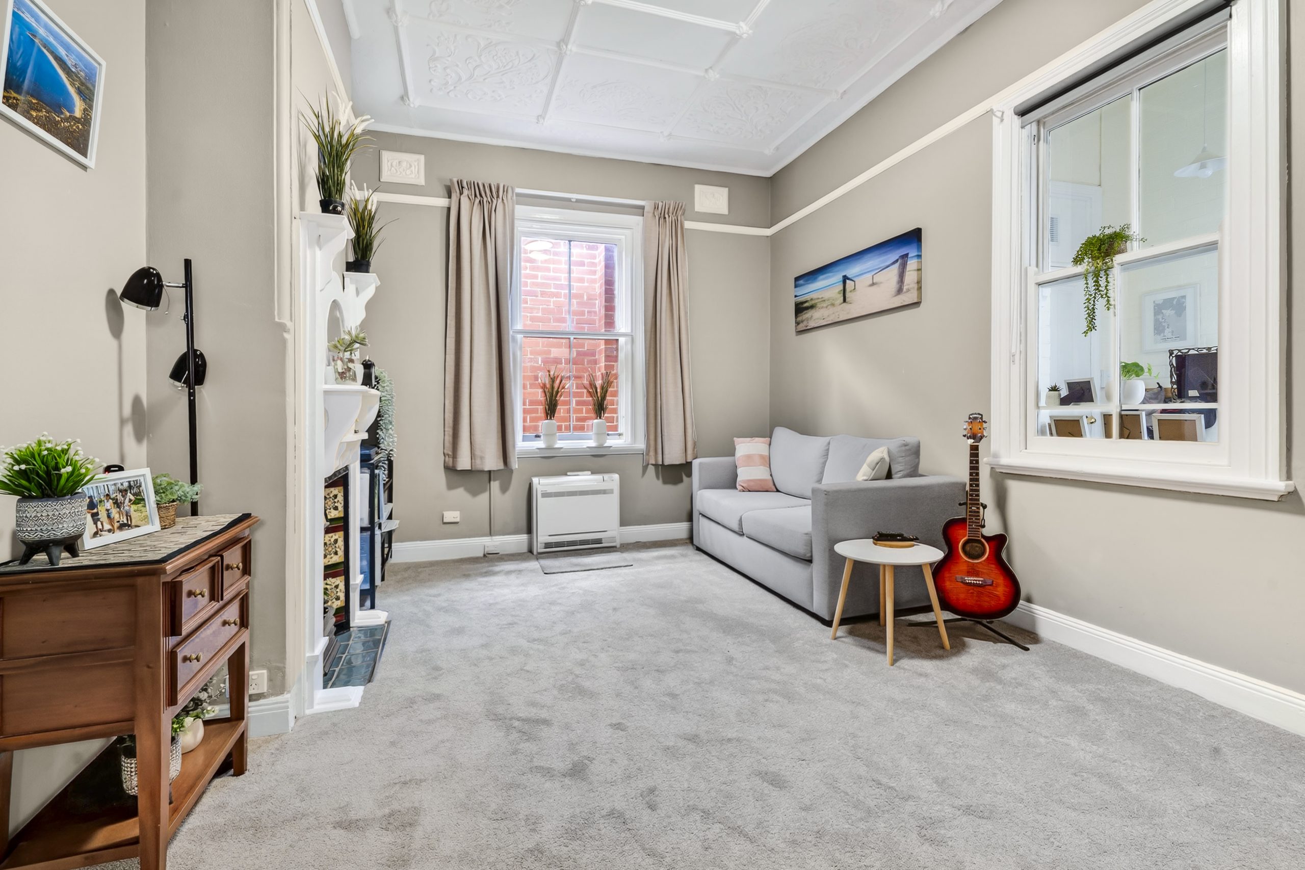 The home offers three generous bedrooms, two with new built-in wardrobes. A light-filled central lounge showcases an original fireplace and intricate high ceilings, while the rear sunroom or dining space provides flexibility and direct garden access. The third bedroom, currently styled as an additional living area, offers versatility for families, couples or downsizers seeking charm and separation in a prime central location.
