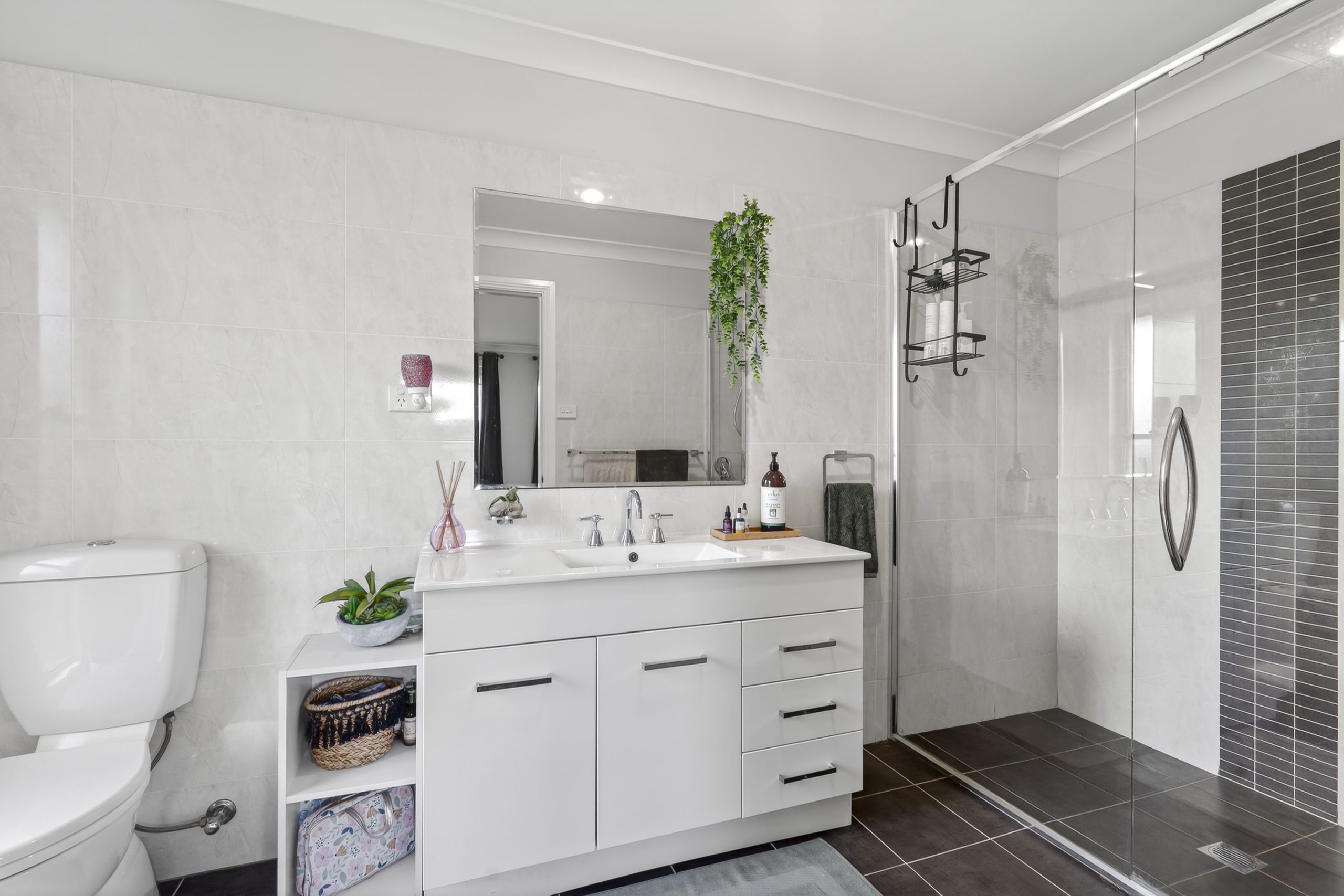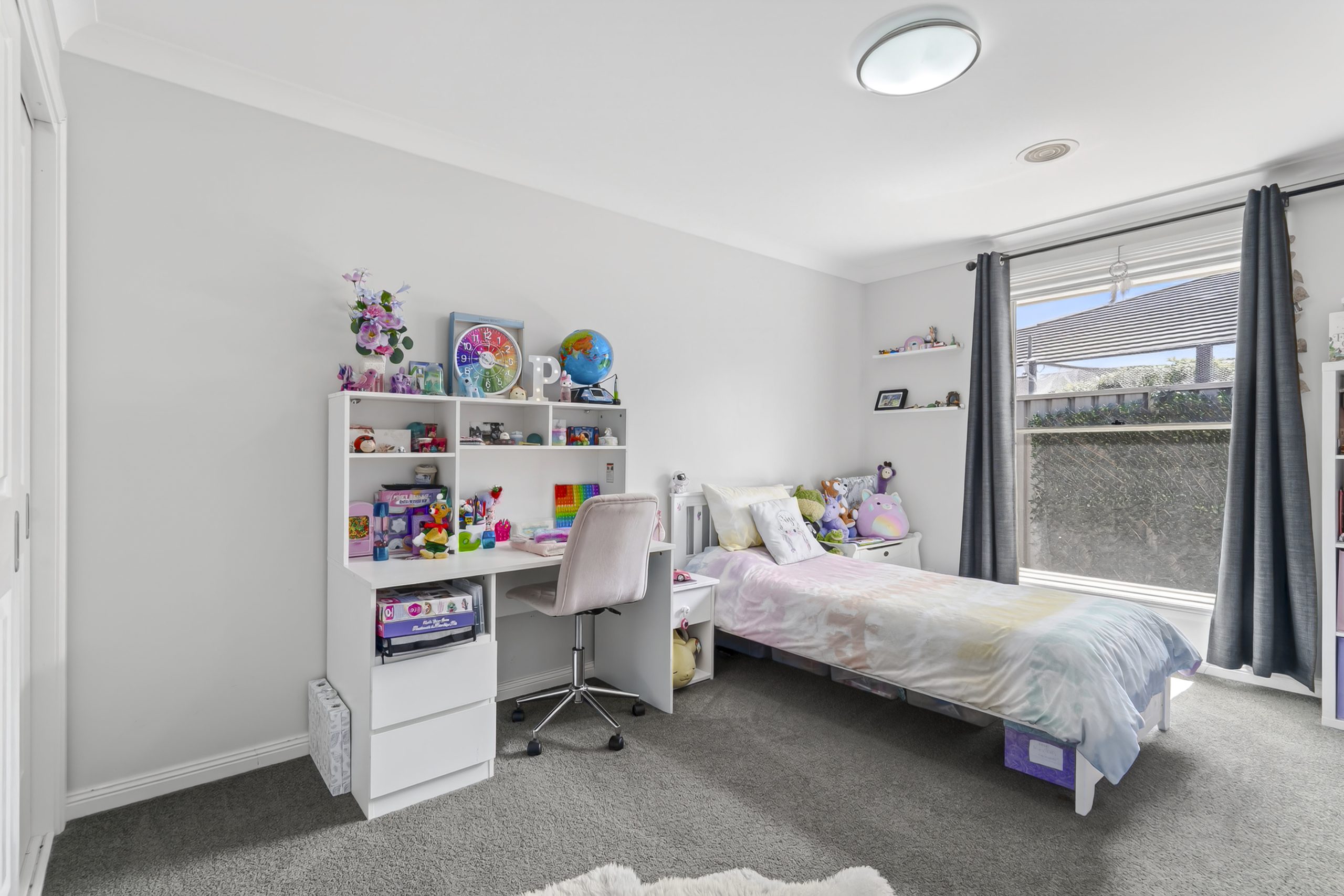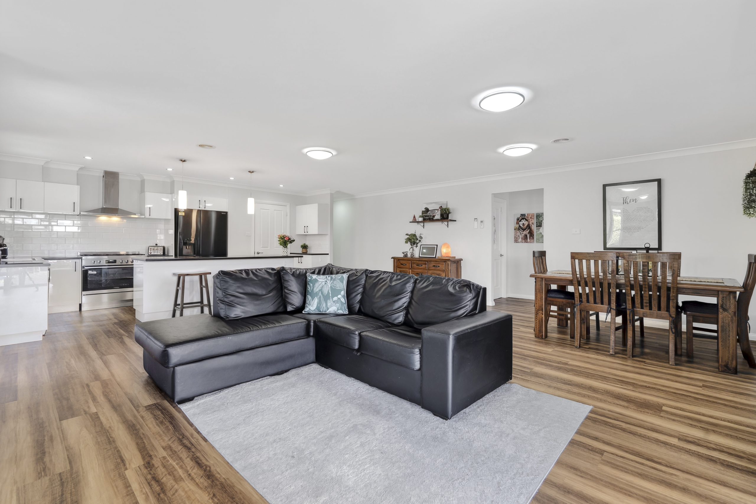 Outdoors, the covered alfresco overlooks a private, low-maintenance backyard, perfect for entertaining, relaxing or watching the kids play. A thriving vegetable patch with supporting water tanks adds a practical and sustainable lifestyle touch.