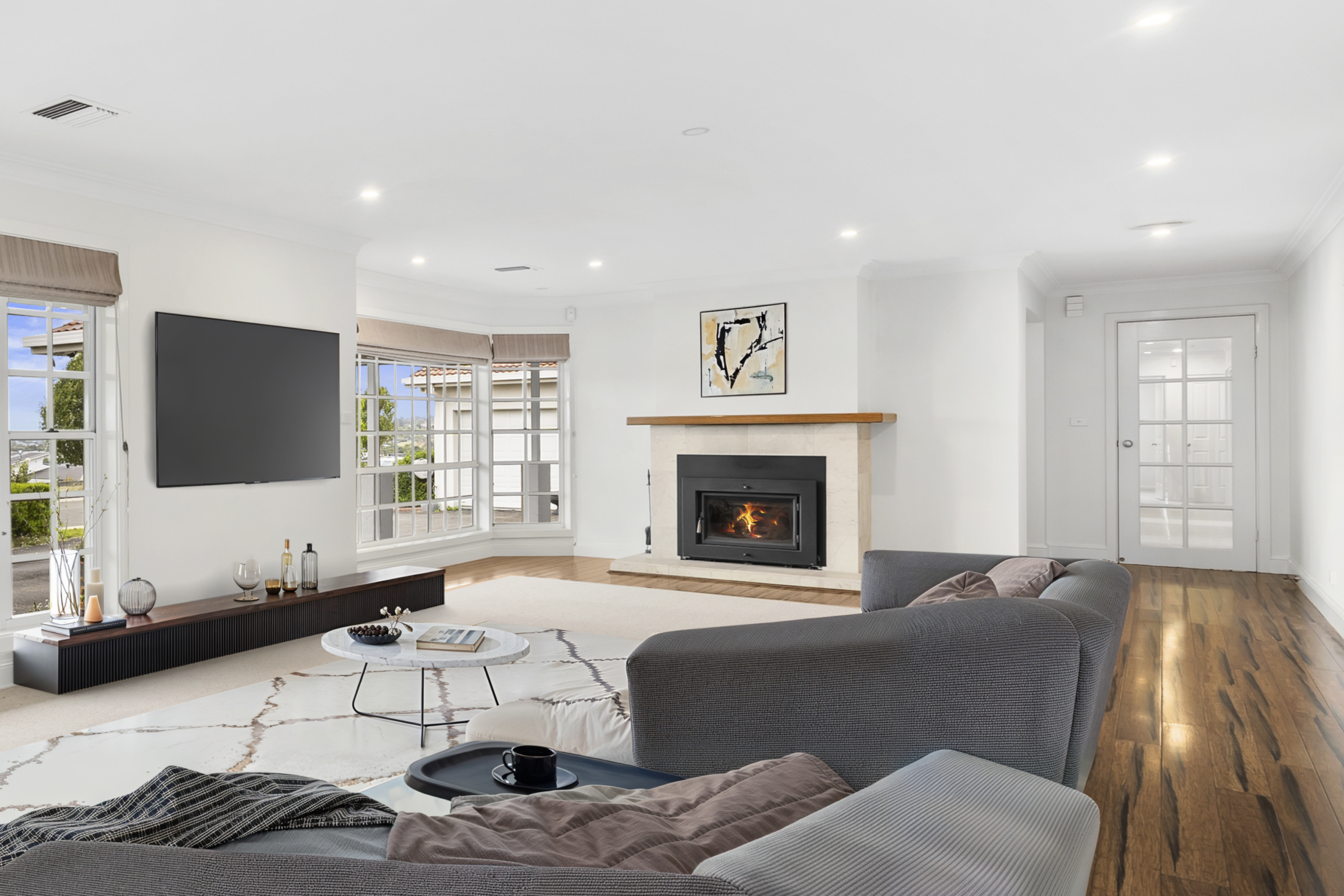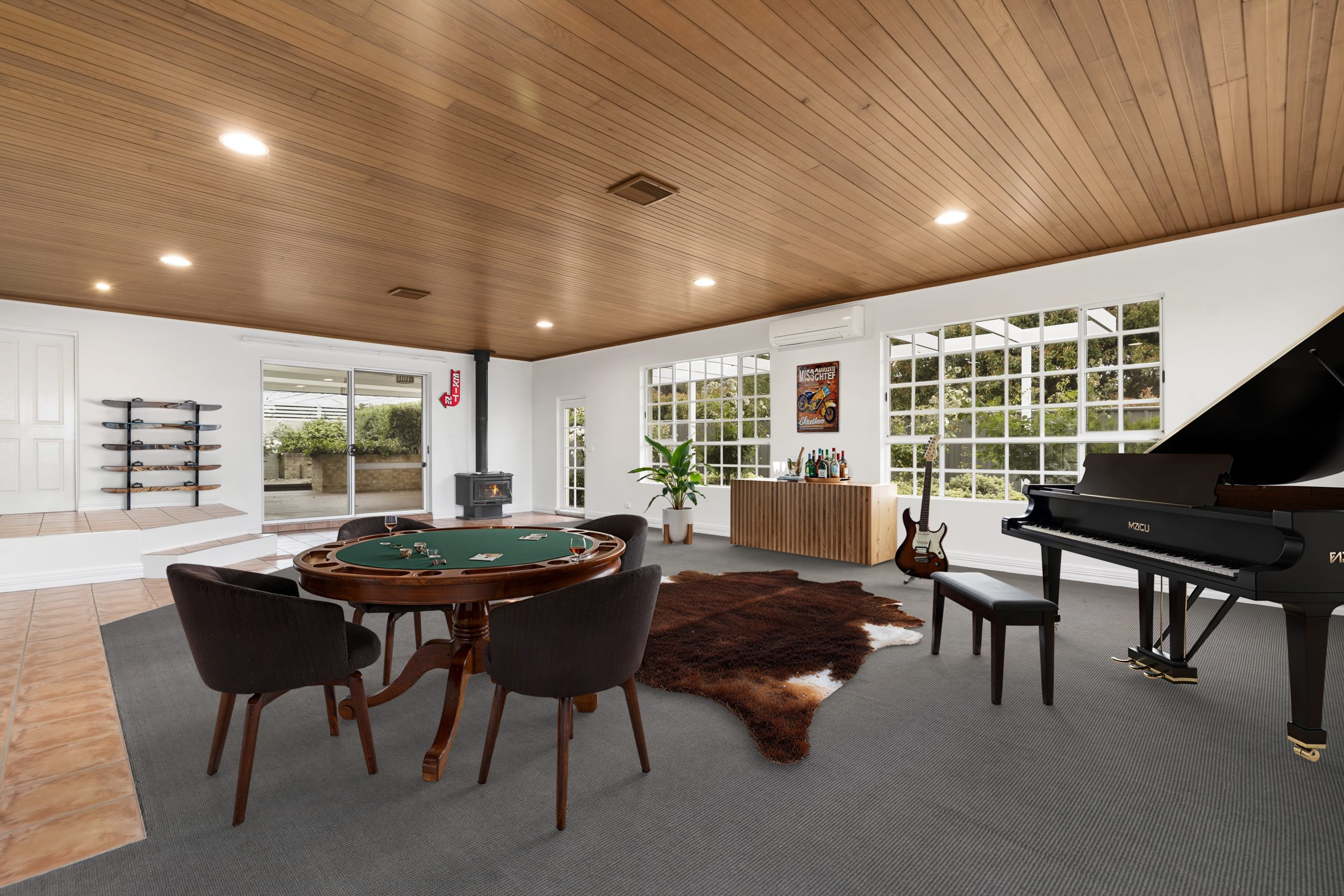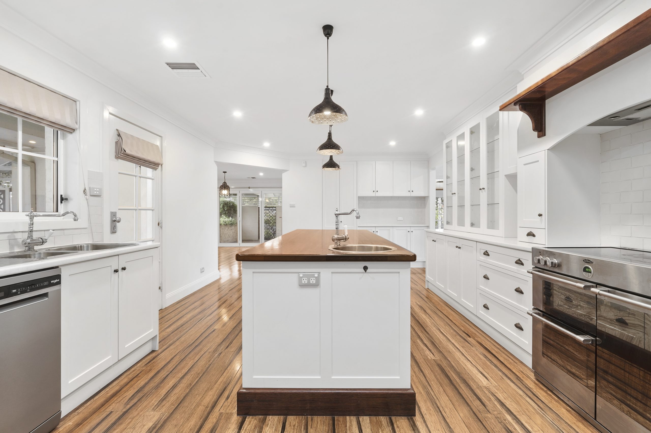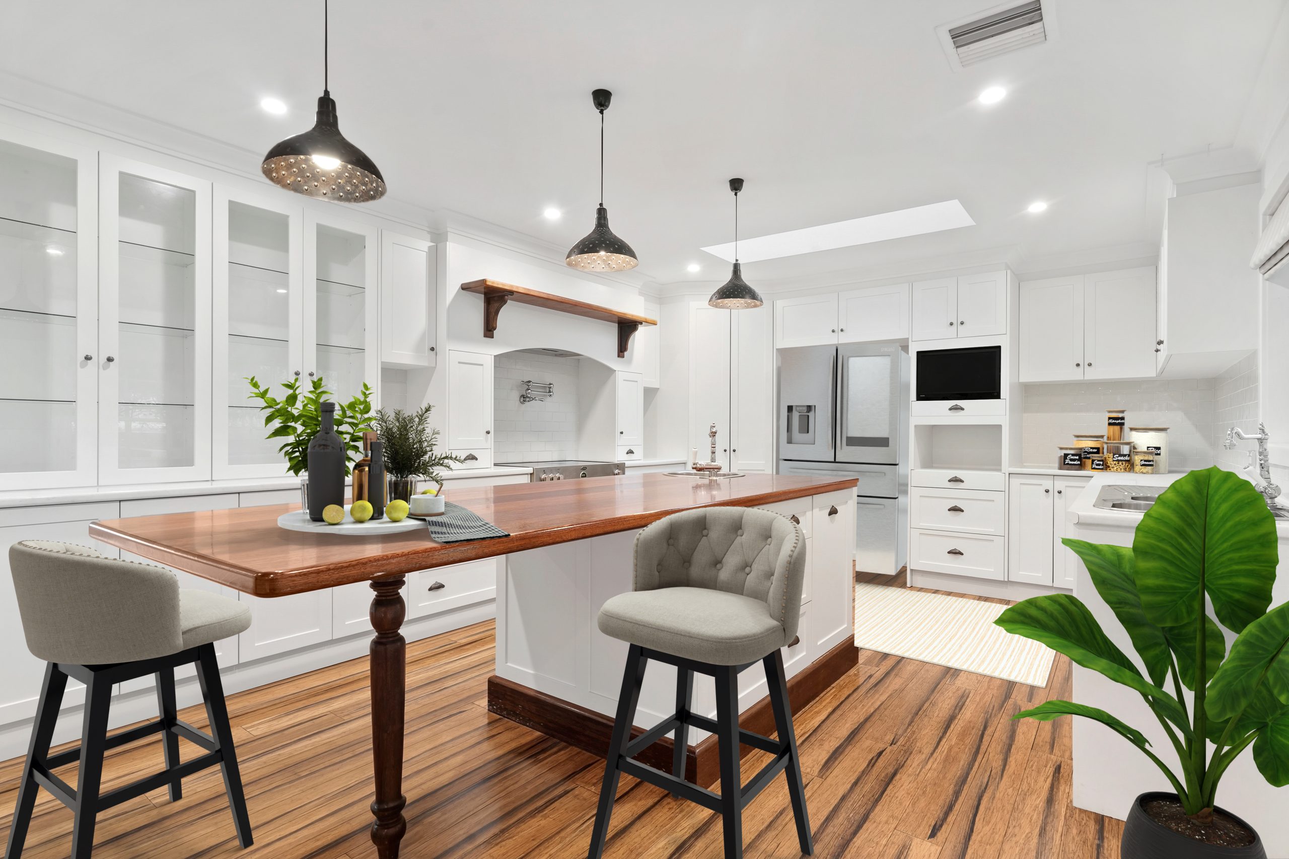 Climate control has been thoughtfully designed, featuring dual wood heaters, a split system, and ducted heating and cooling to ensure year-round comfort. At the heart of the home is a stunning chef’s kitchen, complete with quality appliances, a pot filler tap above the stove, and a large butler’s pantry-an ideal setup for cooking, entertaining, and family living.
